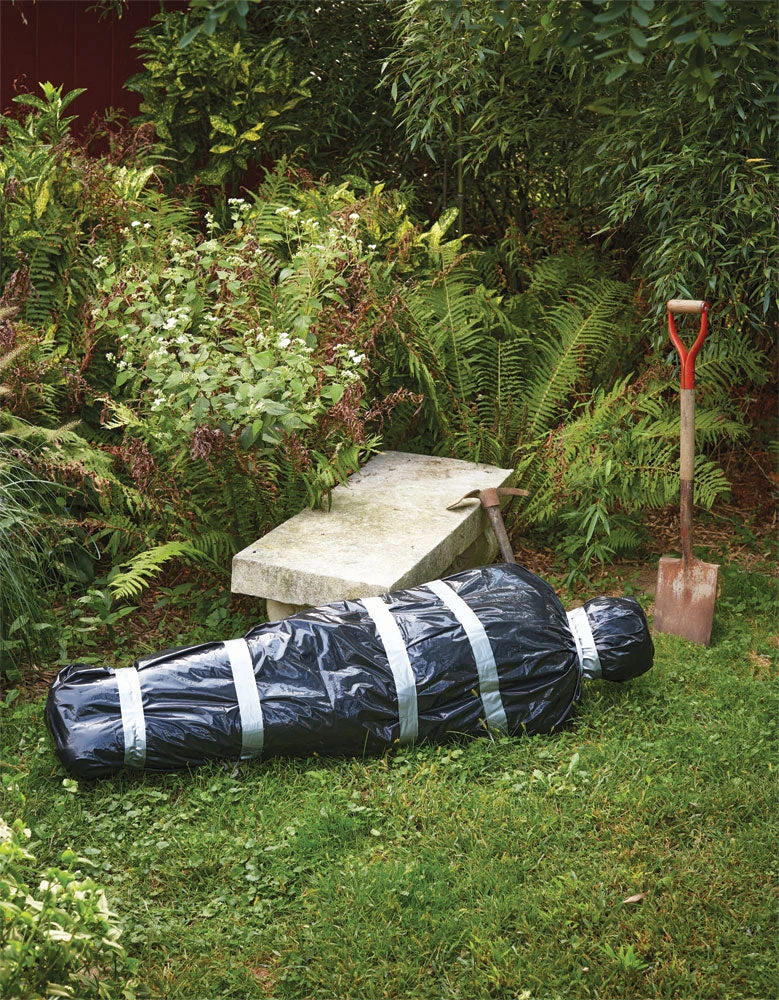 5-foot inflatable body comes with a black vinyl body bag and 5 straps to wrap the body