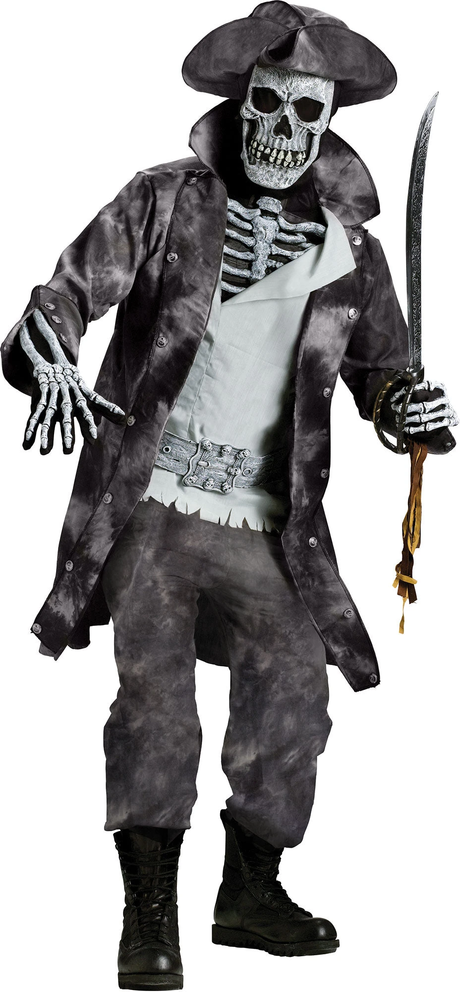 Includes: Jacket, Pants, Bone shirt with attached vest & belt. Hat, Skull Mask, Elbow length gloves with bones.