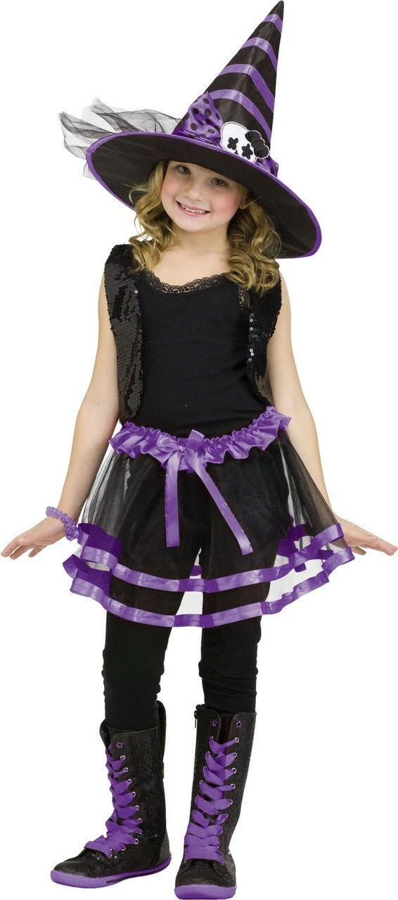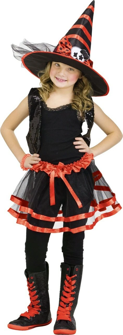 - Ribbon-edged Witches Hat with Polka Dot Bow and Skull Applique